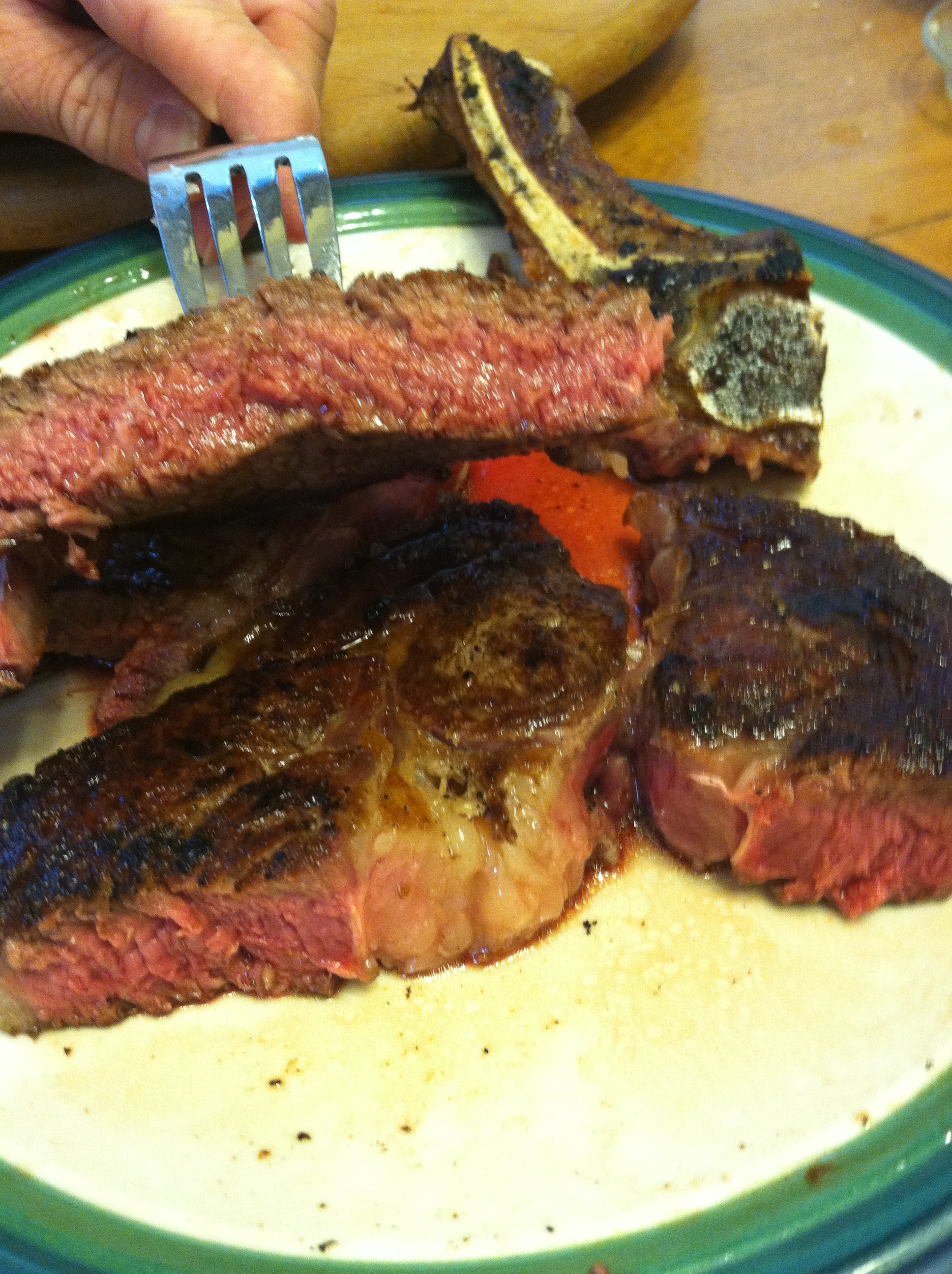 There was a sale at Publix on steak again…this time, it was Rib eye. The hubby cooked it to perfection.. Salt and pepper on both sides, 5 minutes on each side and in the oven on 375 for just under 5 minutes. Behold the glory…