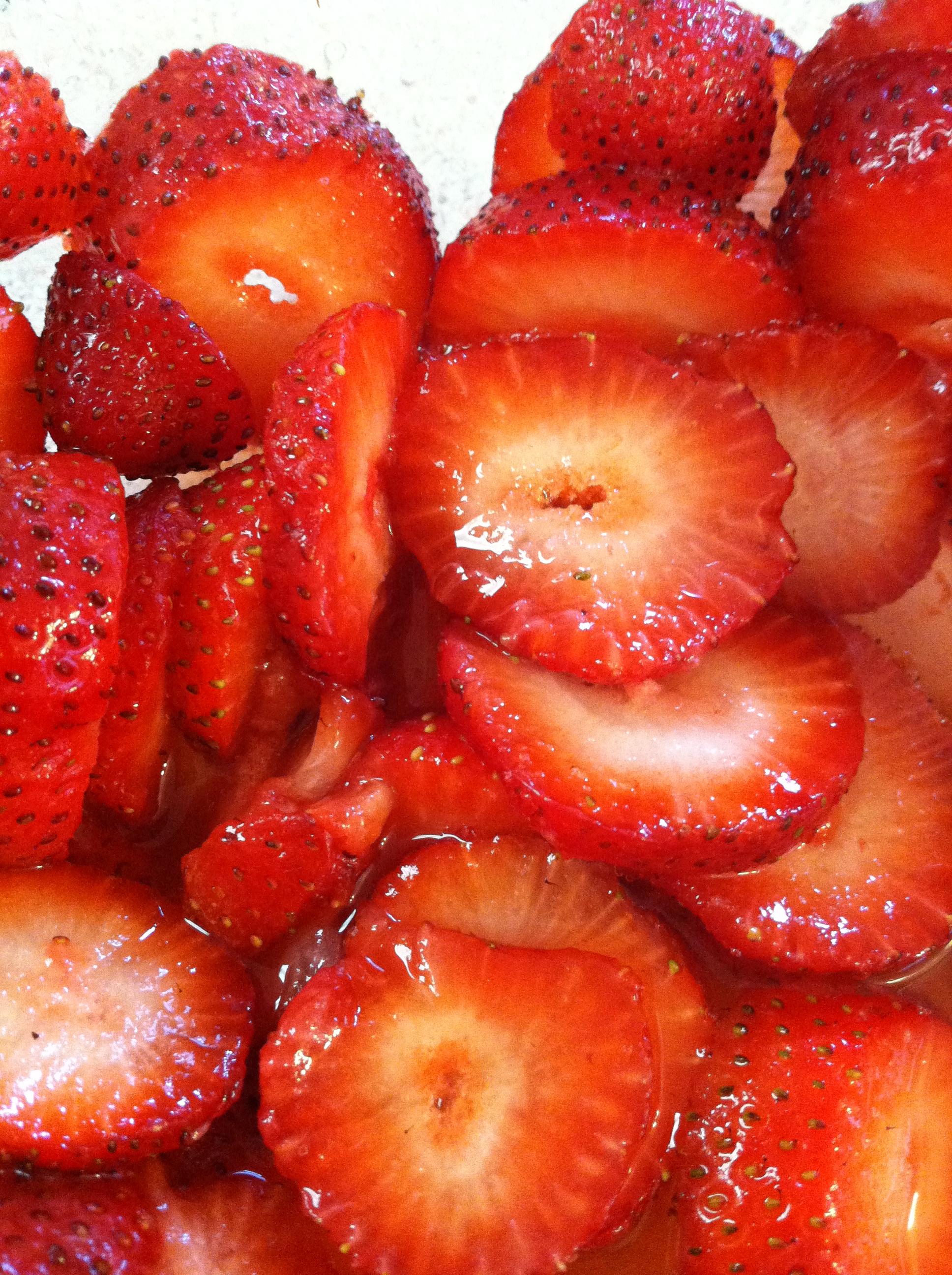 Cut and macerate your strawberries in 3 tablespoons of sugar and a bit of water.