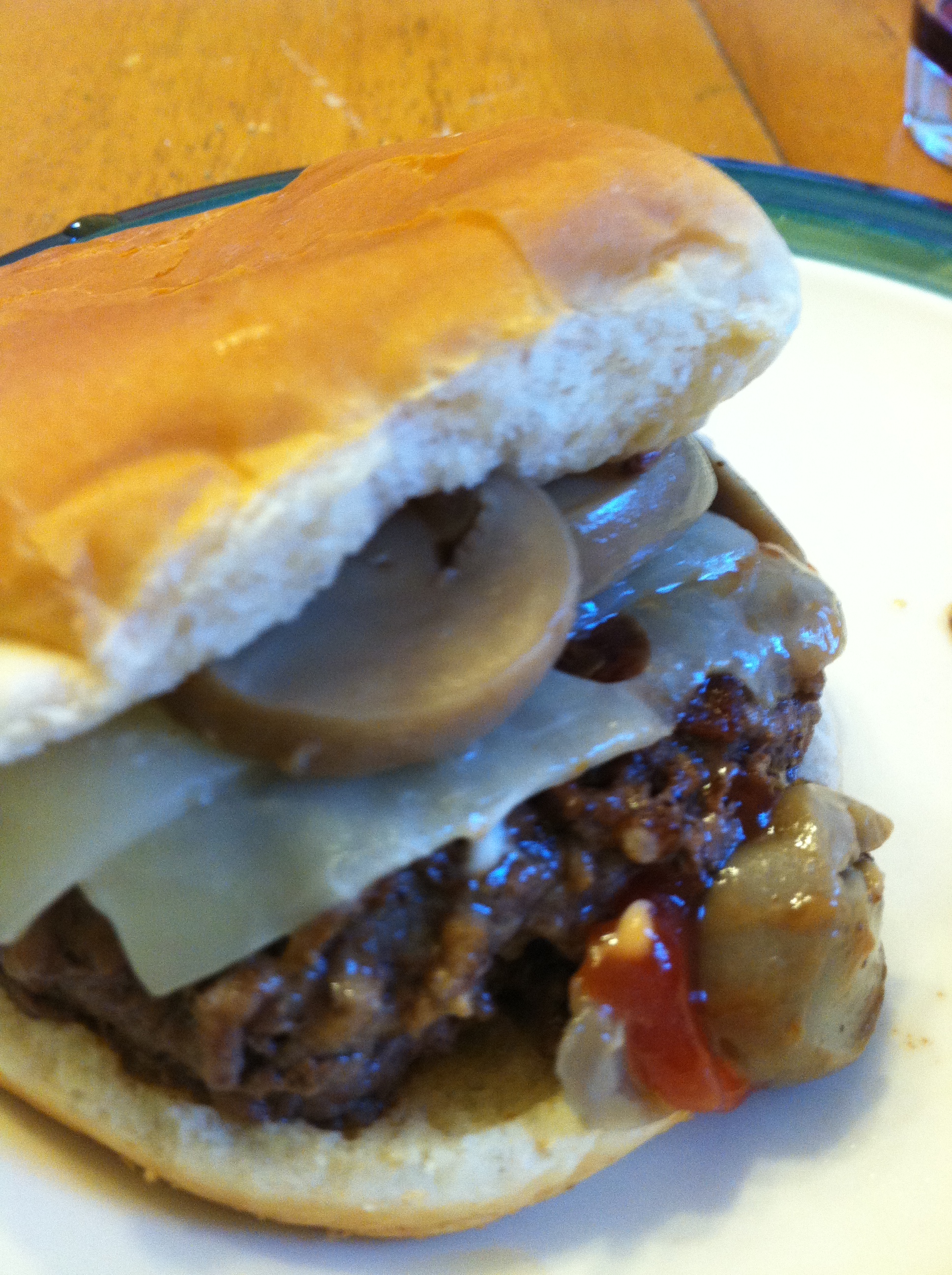 Sat- Mushroom and Swiss Burgers, baked beans- This is what we had tonight…pretty much empty plates all around!