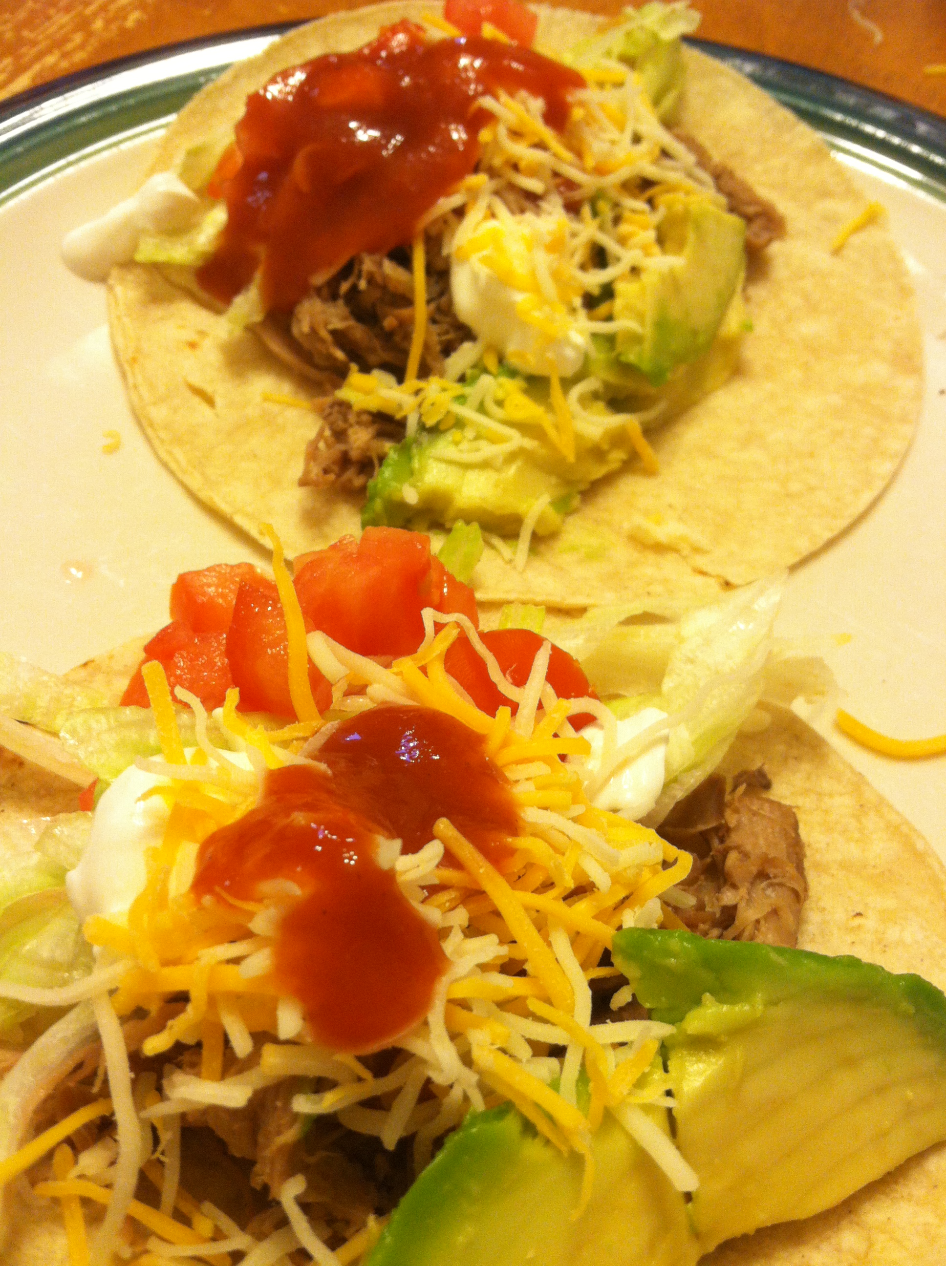 Pork Tacos. 2 words that confuse me. Chicken tacos; Sounds good. Beef tacos; OK, I could eat that. Fish tacos; the spicier the better. Shrimp tacos; Always! You don’t even have to ask! But I am always wary of the pork taco. I am not sure why…until tonight. The girls and I had taco bar night. I make the meat and all the fixings go in little containers. Everyone gets to fix up their tacos.