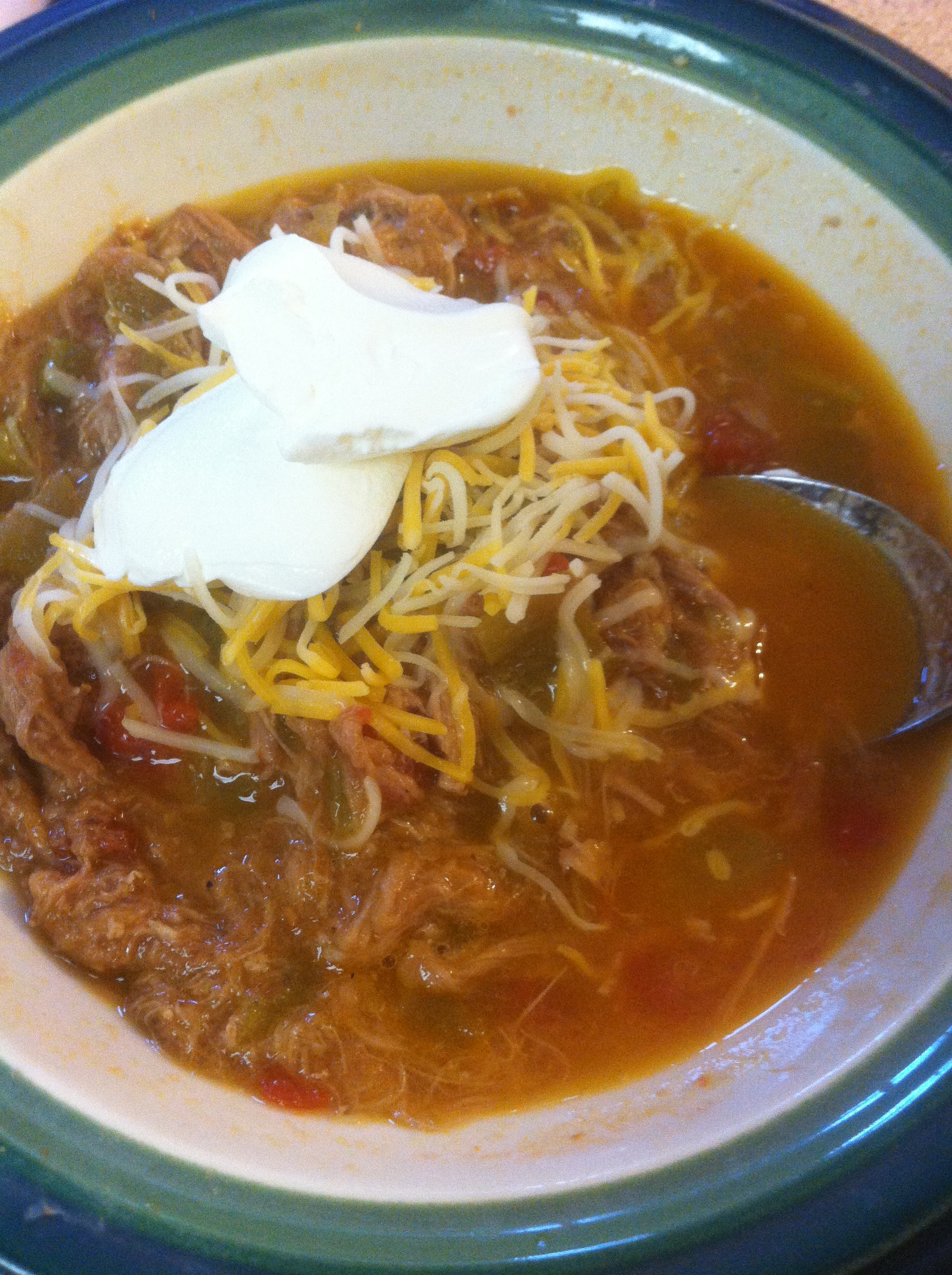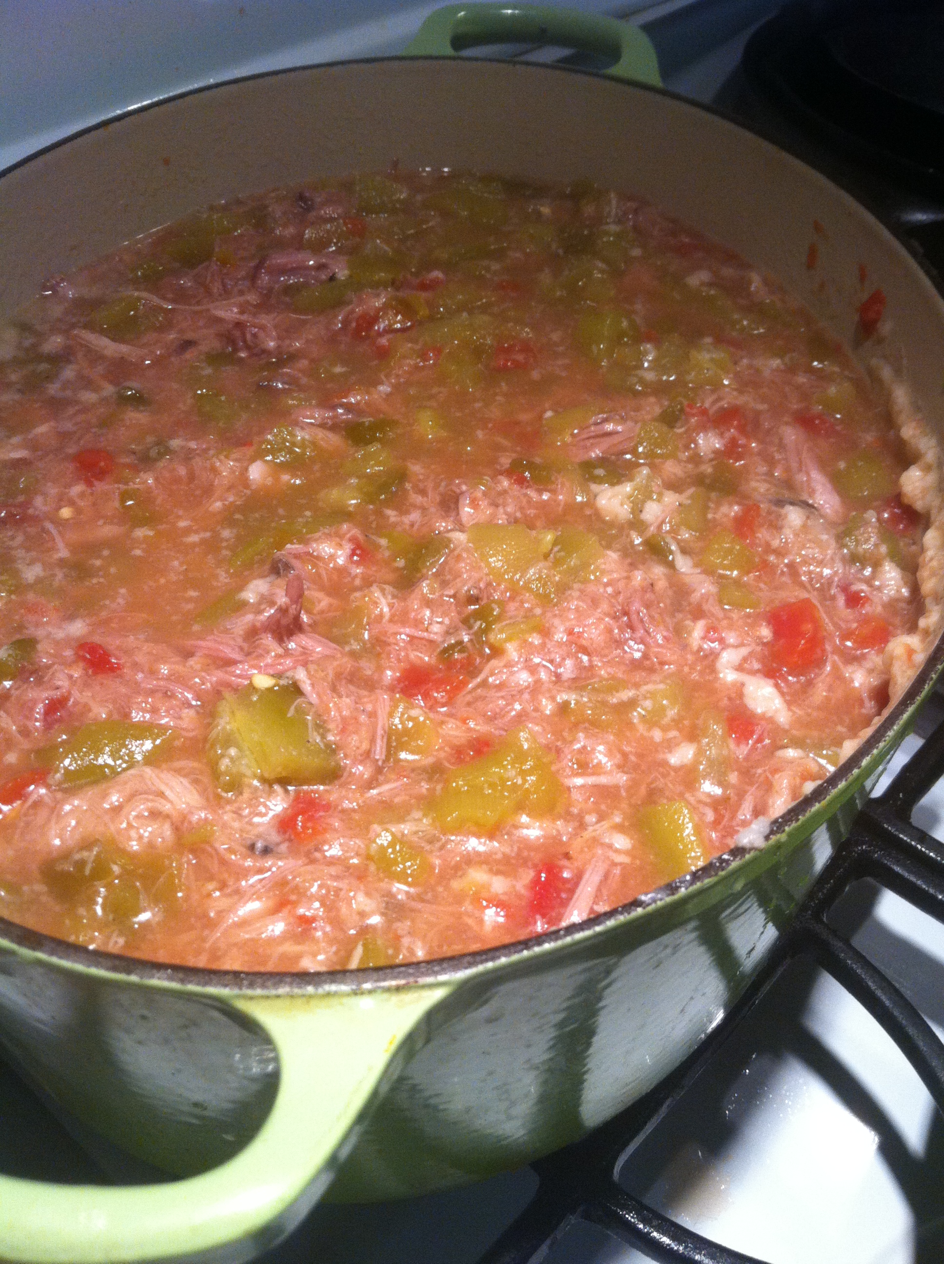 My husband grew up eating this recipe that his mom made and called Chilaquiles. They are not from Mexico… I would consider this more of a pork soup, so technically, this is not a true chilaquiles… but don’t tell them that I said that =)