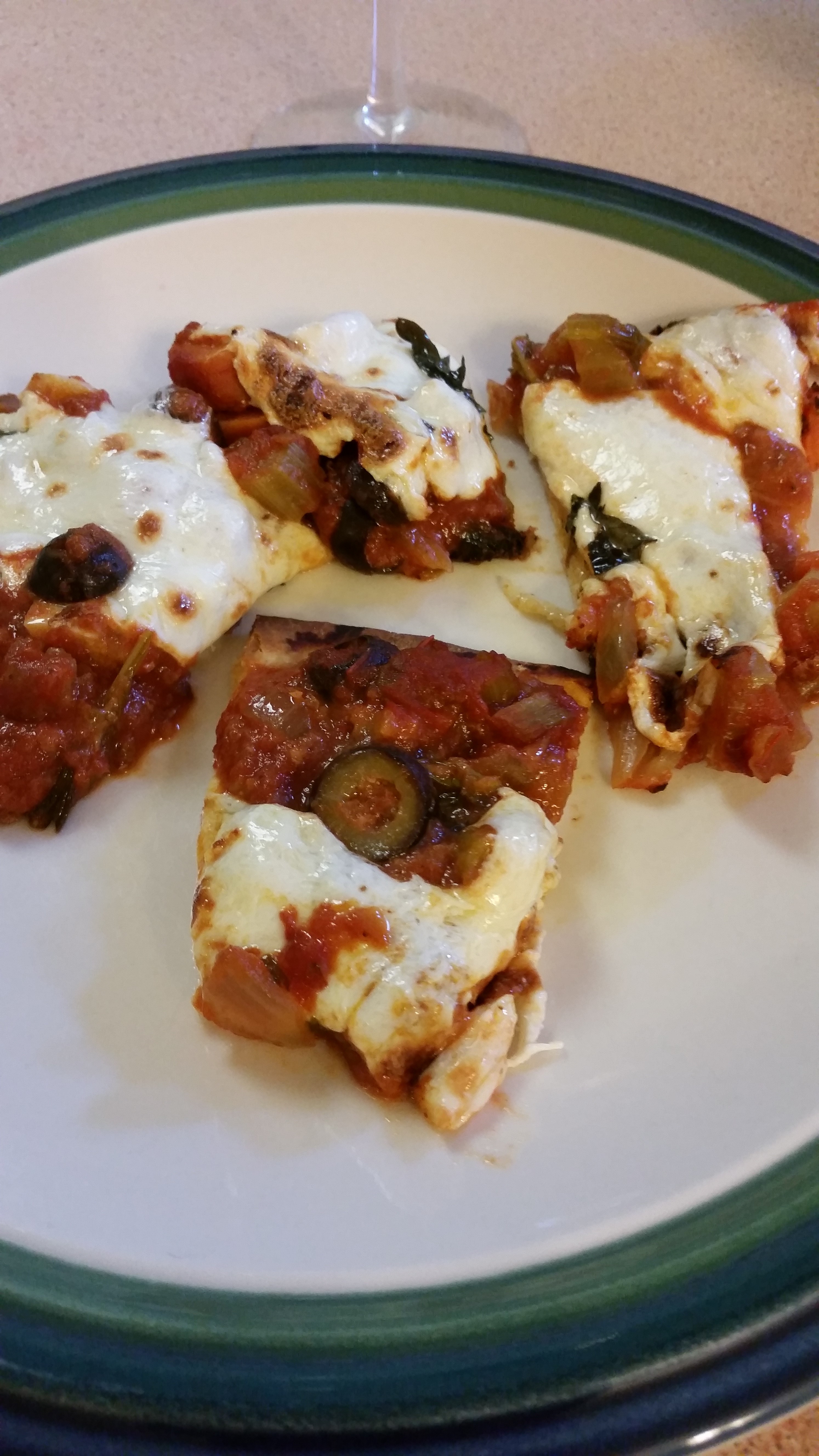 I have been looking forward to this night way too much. I knew my husband had to work late. I knew the grandparents were picking the kids up and taking them to dinner. I knew my Thursday afternoon schedule was finally back to normal. What does this mean? Mama has the whole house to herself for at least 2 hours! My plan was simple. Leave work. Stop and buy a bottle of wine (I ran out Monday when one of my besties from college helped me polish off my last bottle of Pinot Grigio). Come home and create a yummy pizza with ingredients already in my fridge. Drink said wine while cooking said pizza. Drink said wine while eating said pizza while watching TV in more than normal amounts. SILENCE IS GOLDEN!