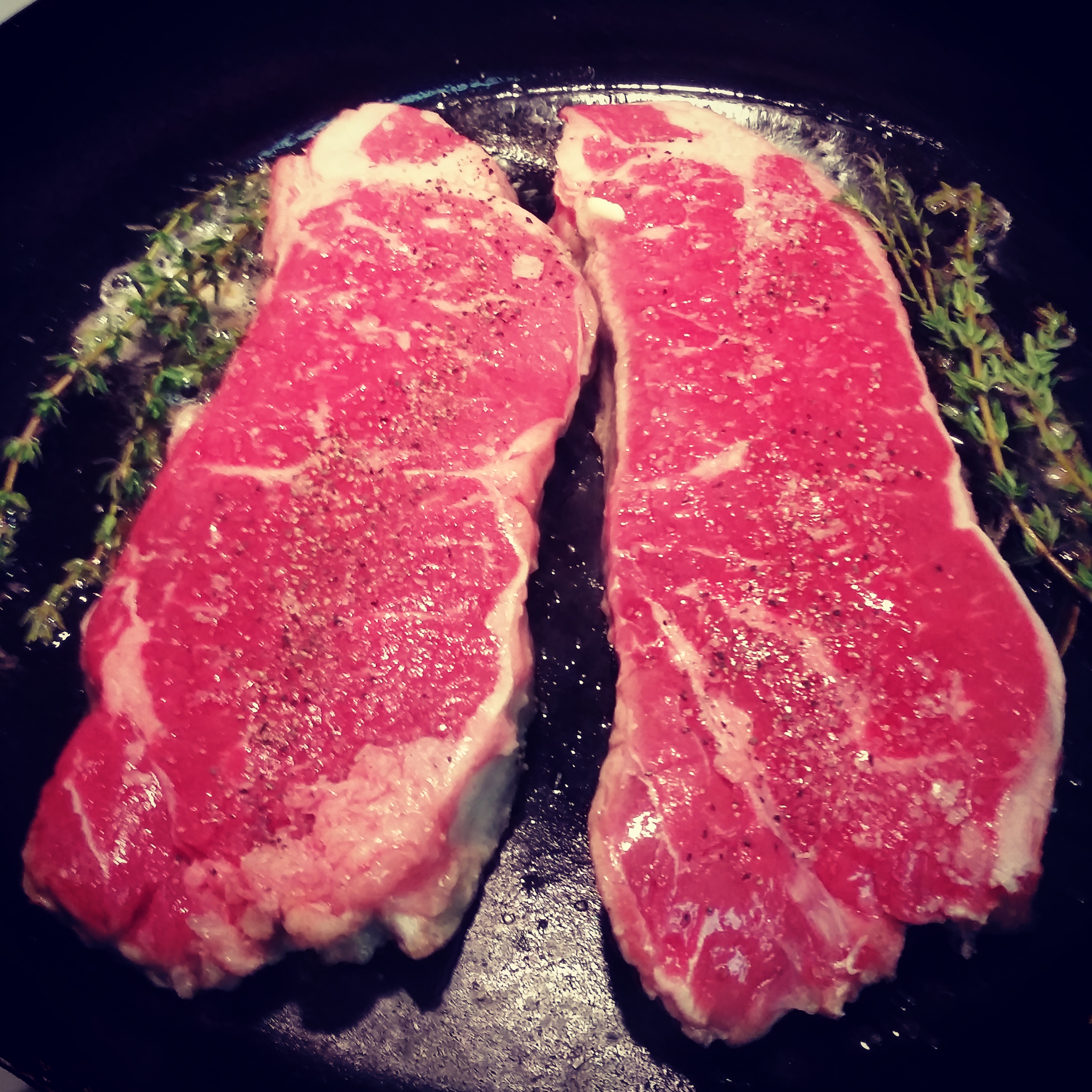 Hey, ya’ll! So Friday was my birthday. I have had a great birthday weekend full of great family, friends, and food! Here is one way I spoiled myself this weekend…I bought some strip steak that was on sale. I thought of this recipe when I remembered I had some thyme already in my fridge. SO GOOD!!!!!