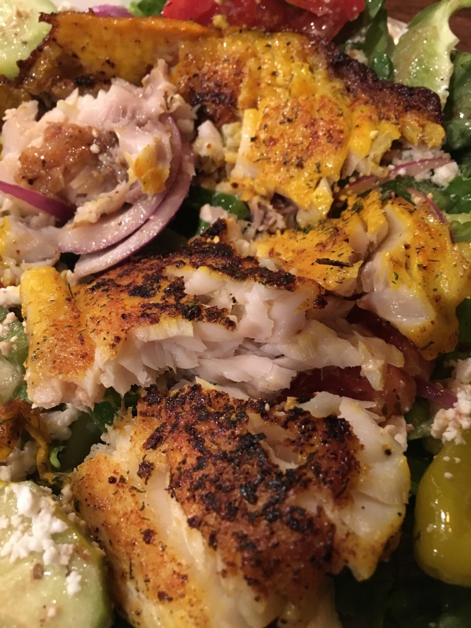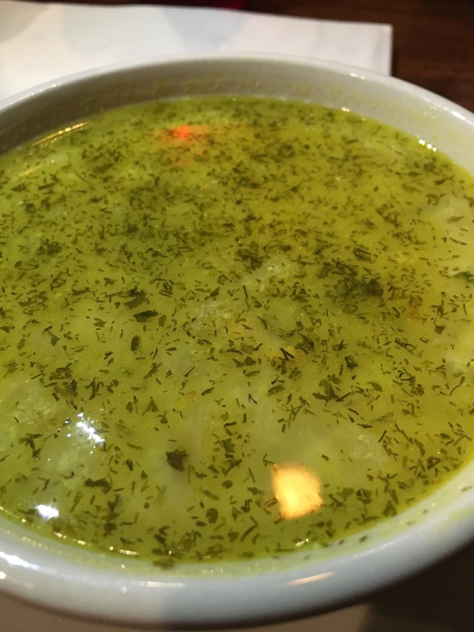 We also ate out a couple of nights. This is my tilapia salad and lemon chicken soup from a local Greek place.