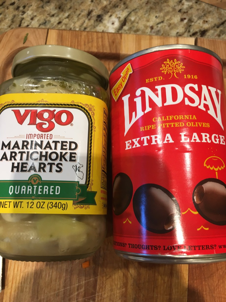 In my second dish, I added chopped artichokes, black olives, capers, and the rest of the shrimp to the spinach pesto pasta. Salty, garlicky, pasta perfection!