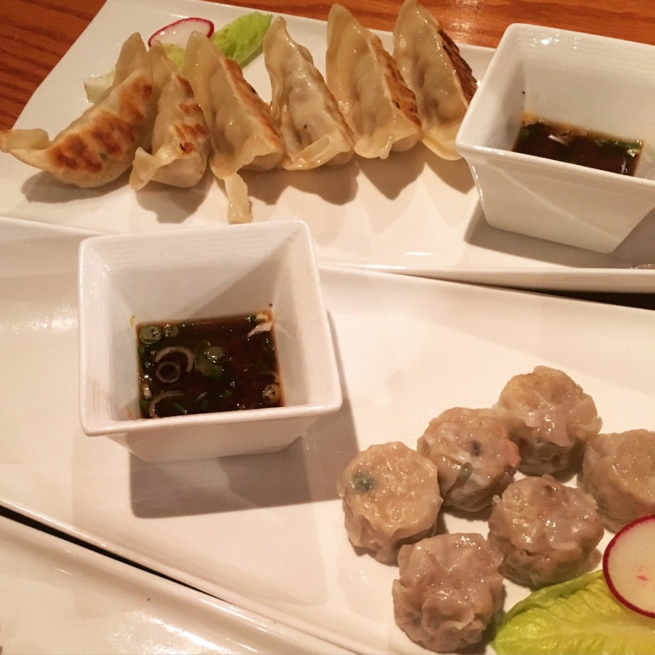 Pan-fried dumplings and Pork Shumai