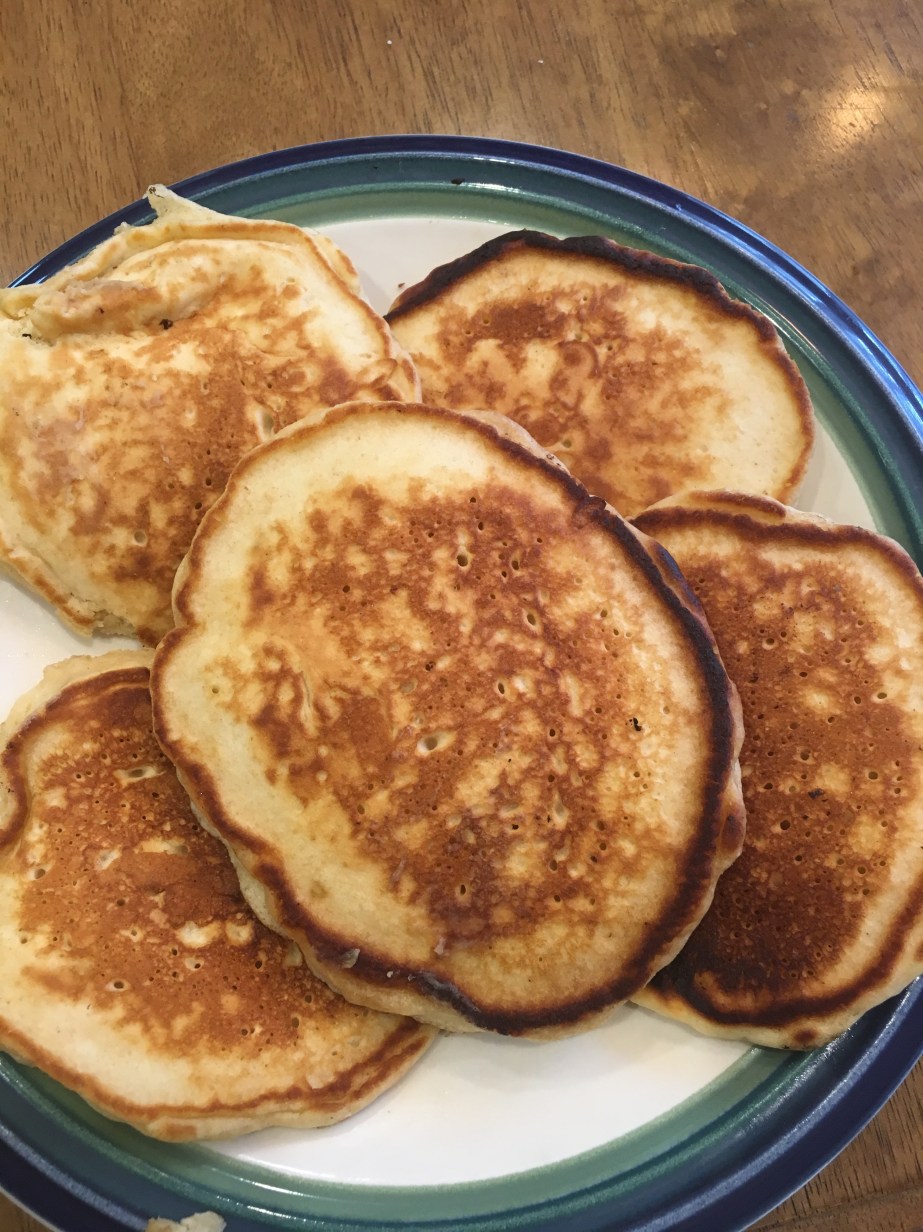 Continue adding more butter to the pan (I just rub the stick of butter on each time. and remaining batter. The size of your pancakes will determine how many you make; mine were on the larger size, so I had about 12.