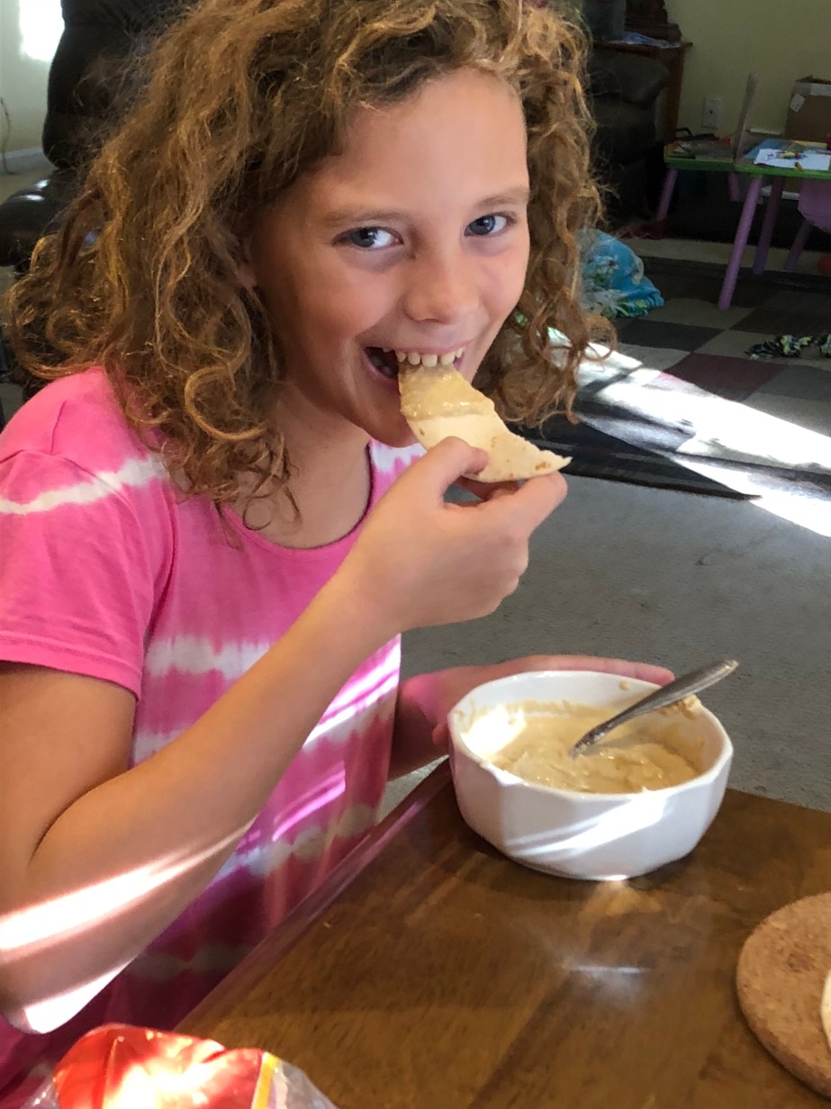 Becca has been begging to make hummus. This was a basic recipe that we made in the blender. We threw everything in the blender and let it whir! So easy and yummy!