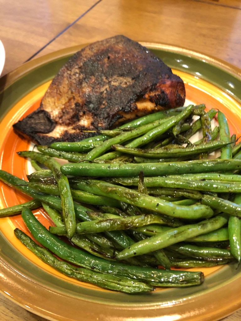 I cooked the green beans the same amount of time as the salmon with constant turning.