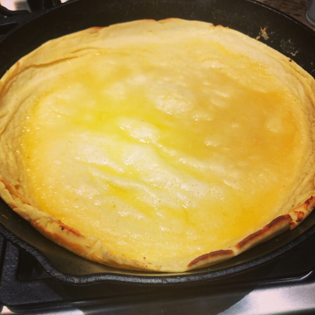 I have always wanted to try make one of these, so this morning, Becca and I attempted our first Dutch Baby. It came out super yummy! It is like mix between a crepe and a pancake. Delish!