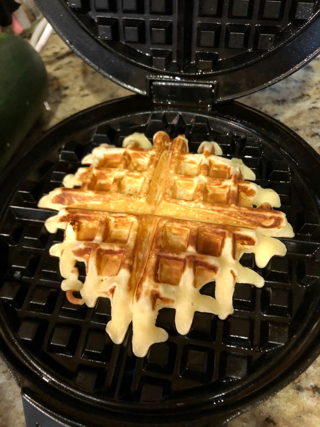 Waffles remind me of snowflakes. There is no one that looks the same. Unless it is Waffle House, then yes they are yummy and all look the same. But I love playing with my pancake and waffle recipes. Here is what I did this morning, bored in the house.