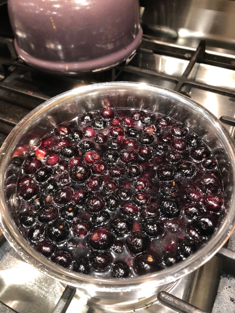 The berries were looking a little grumpy, so I threw them in a pot with a cup of sugar, a few tablespoons of lemon juice (could use orange juice), 2 tablespoons of maple syrup, half of cup of water, and a splash of white wine. The alcohol cooks out, NBD. I cooked them on medium heat until they boiled, then I turned the burner down to low and let them simmer for 20 more minutes.