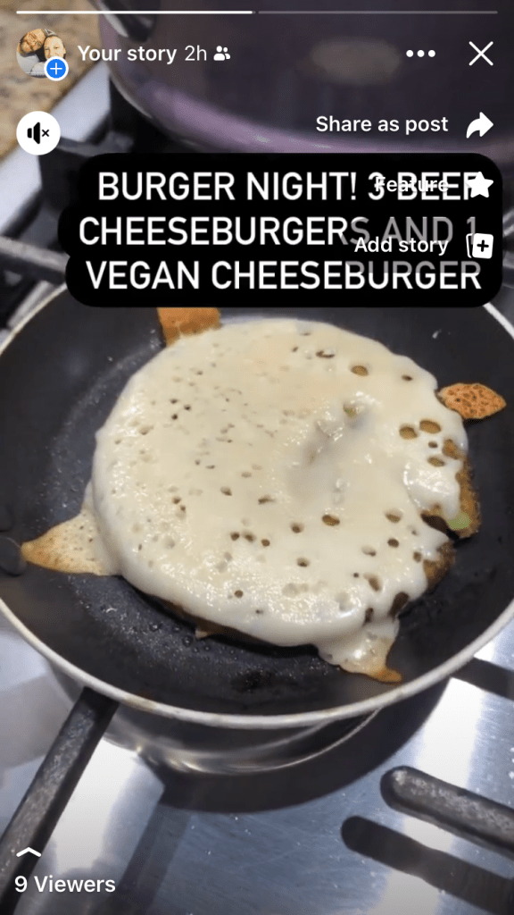 I don’t define my eating habits, but I’m partial to vegetarian and vegan. Here is my vegan burger covered in Swiss cheese 🙂 The rest of my family ate beef burgers.