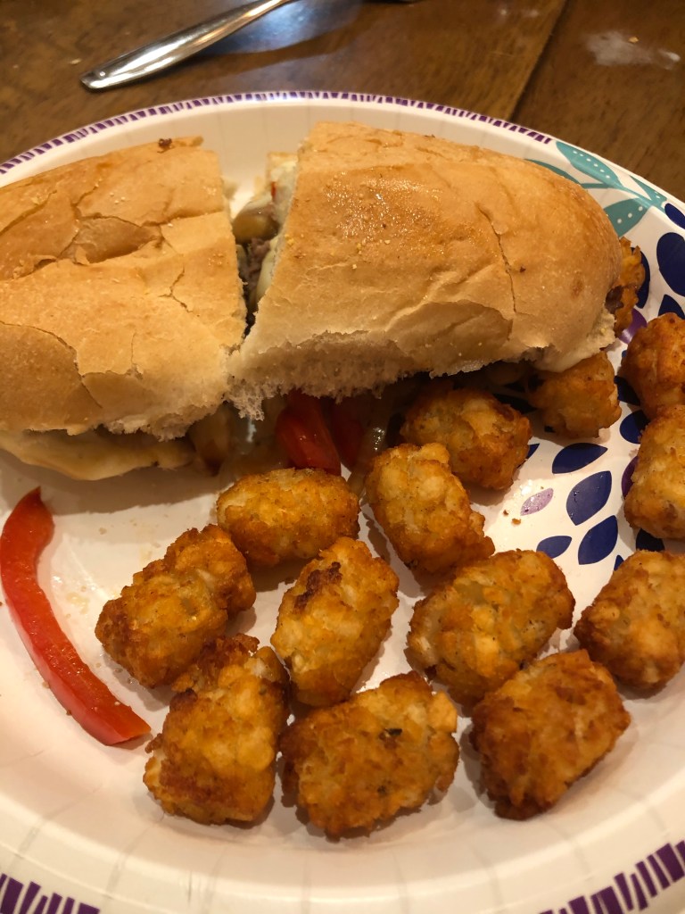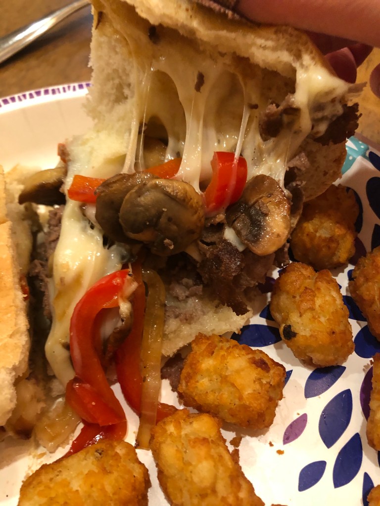 Happy Sunday! Hope everyone is having a great weekend! Today the hubby is smoking some ribs, so we have that to look forward to tonight for dinner! Last night I made these Cheesy Steak Sandwiches, except I cooked the meat apart from the veggies. Now that the girls are getting older, they are actually getting more outspoken about what they like and what they don’t like. I made their sammies with just meat and cheese. I also cooked some frozen tator tots in the air fryer for about 12 minutes. So yummy! I will bake fries or tots in the oven again!