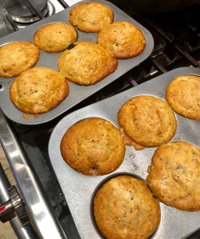 I spied a few sad browning bananas on the counter, so I decided to have a little baking fun. I made two different recipes; chocolate banana bread and blueberry banana muffins. I may have gone a little crazy, but luckily I have an awesome neighbor whose family loves to taste test my creations π