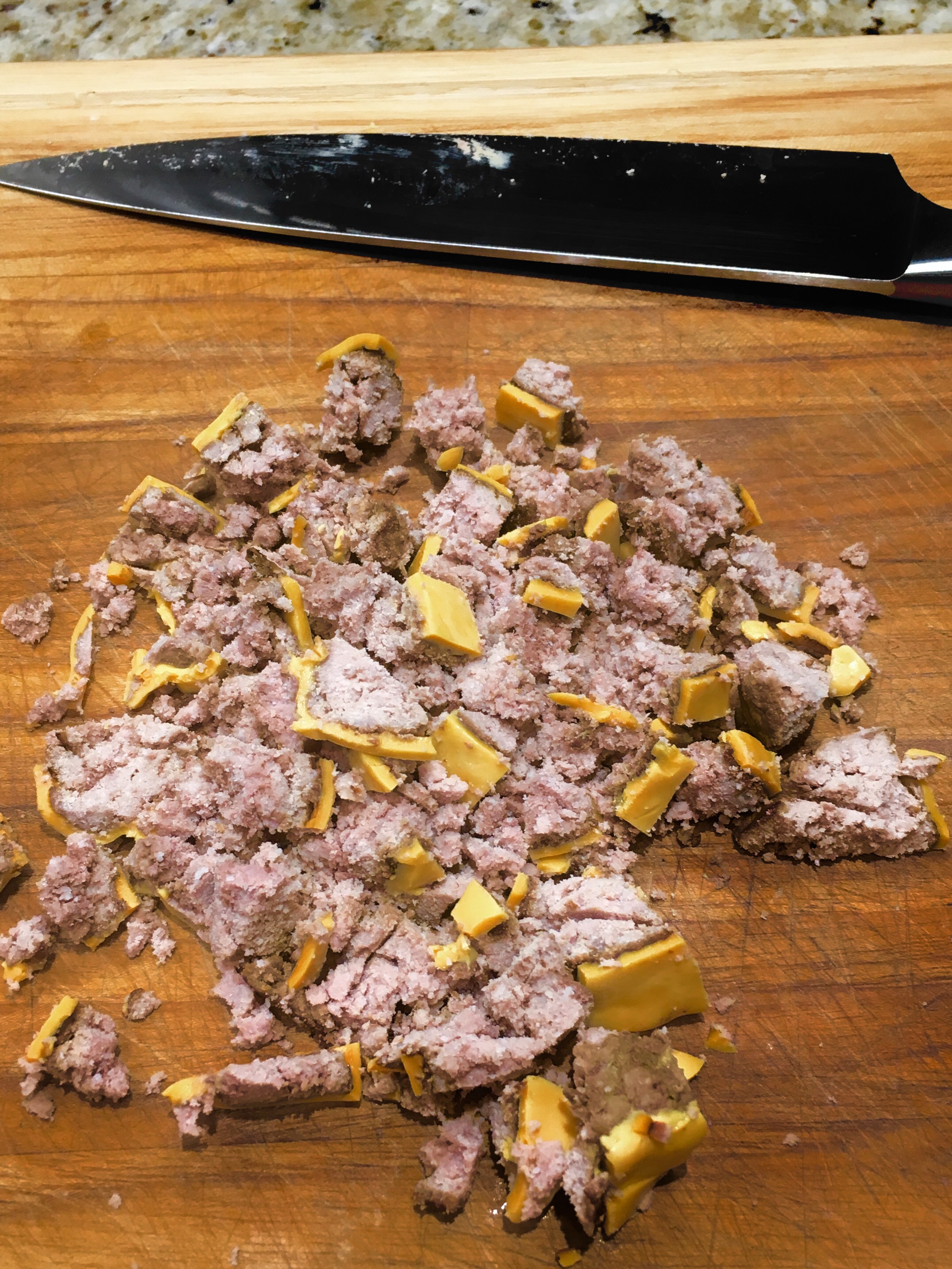 I took a pound of ground chuck and seasoned it with some salt, pepper, onion powder, and garlic powder. I cooked all the burgers as thin as possible for about 5 minutes on the first side and 3 minutes on the other side. I took 2 slices of bread and added a slice of cheese on each one. We are a house divided, Katie and I like Swiss, and Rucks and Rebecca are all American cheese. I actually love all cheese, so no shade here.
