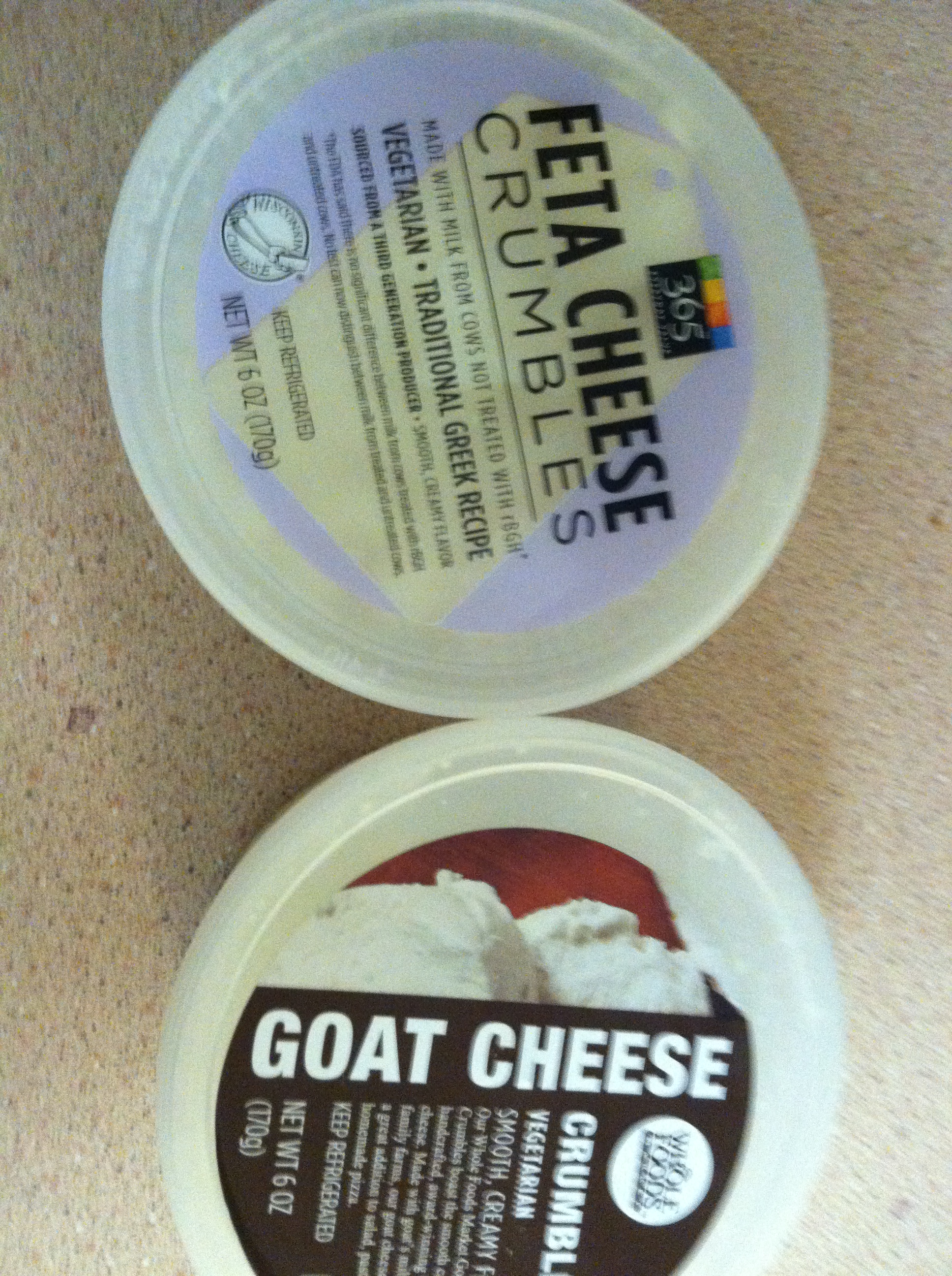I always keep these kind of cheese crumbles in my fridge. Good for salads, omelets, etc.