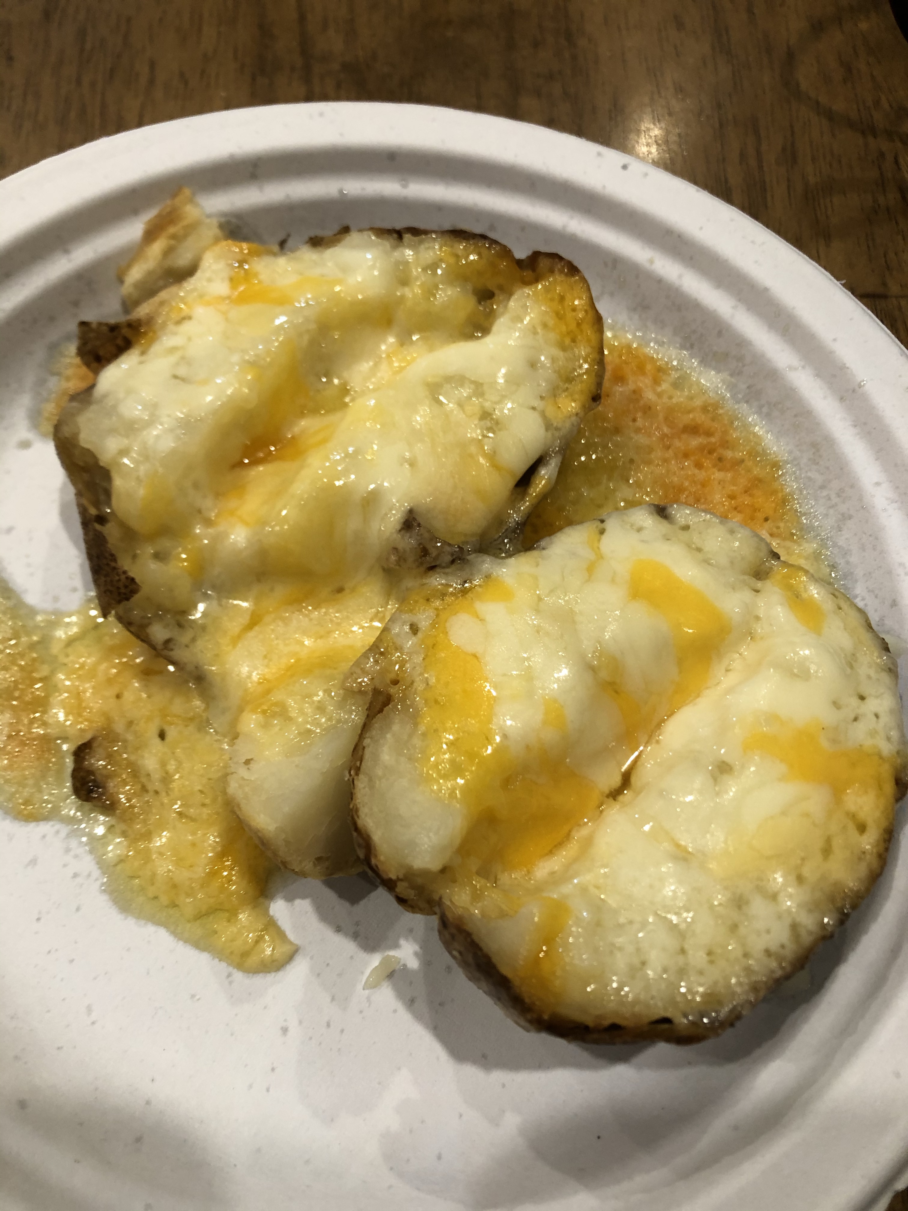 As I was making the wings it dawned on me that we needed something else to go with them, so I found some red potatoes in the pantry. I cut them in thin slices, coated them with olive oil, salt, pepper, garlic powder, onion powder, and fresh thyme. I put a few pats of butter in my cast iron and a bit more oil and fried up them up until browned and crispy on the outside and cooked through on the inside, about 20 minutes. There were no leftovers…