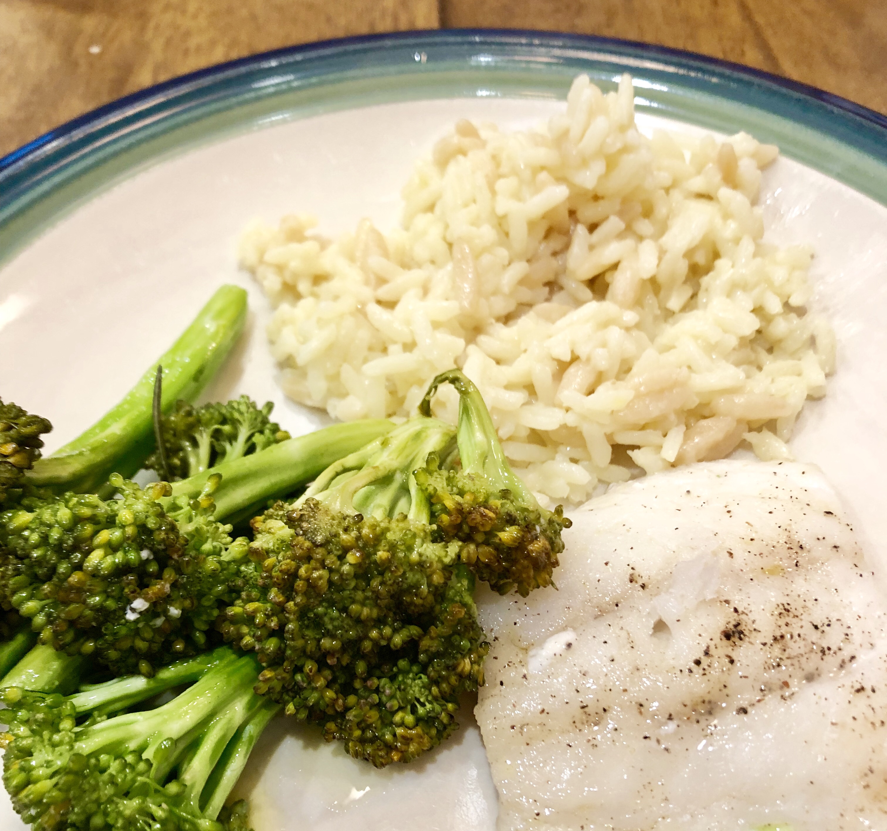 It was super easy. I preheated the oven to 375. I put all my cod (heavily salted and peppered) and broccoli in a large aluminum foil pouch with a stick of butter (cut up), 4 cloves of garlic crushed, and 2 sprigs of rosemary. I cooked it for 25 minutes in the oven on a sheet tray. It came out perfect. I also added a side of rice pilaf, that took 25 minutes to make. So yummy! Clean plates all around!