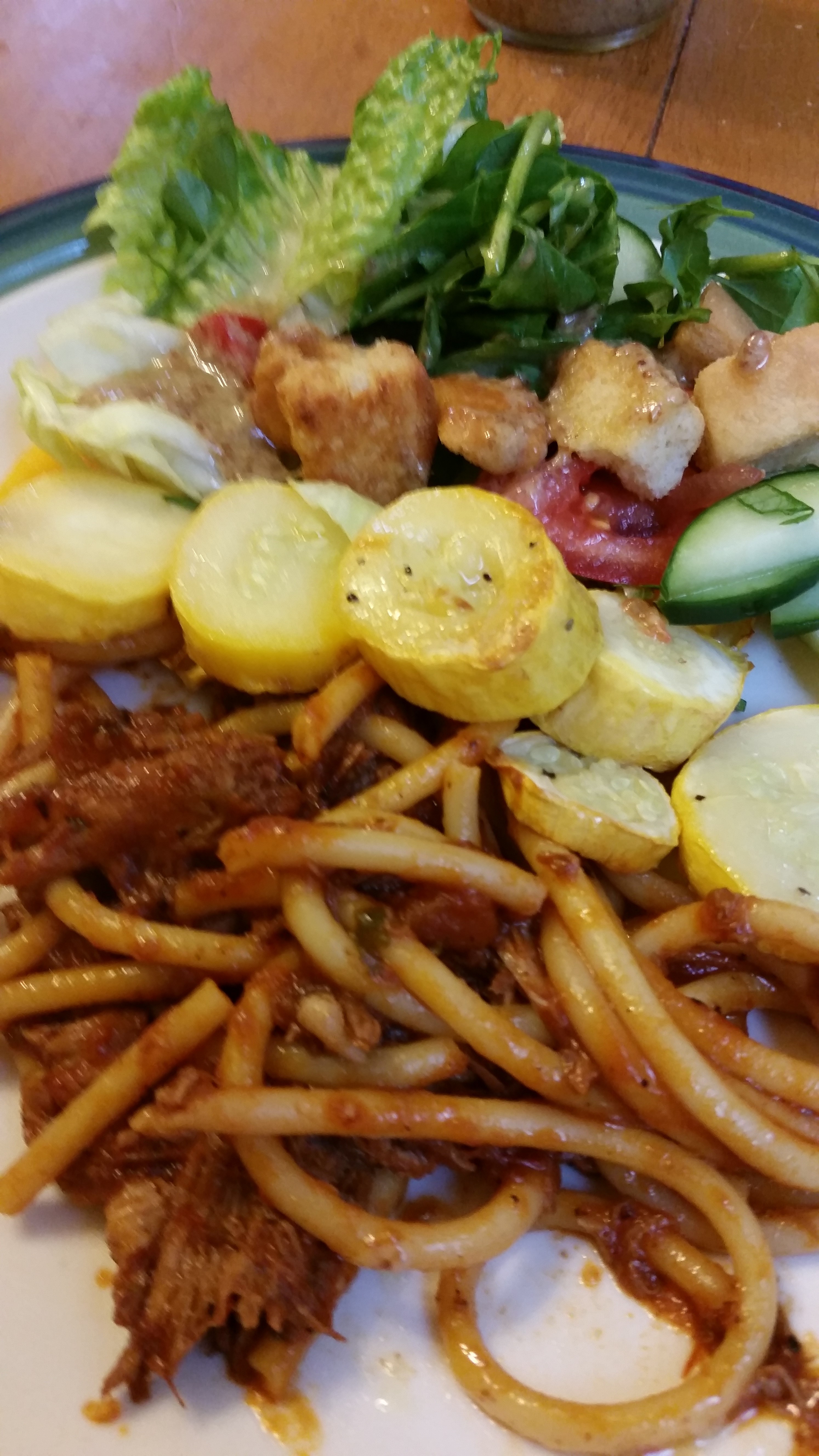 Take out the chicken and add in a bit more oil. Add in your veggies. Add seasoning. Cook for 15 minutes or so.