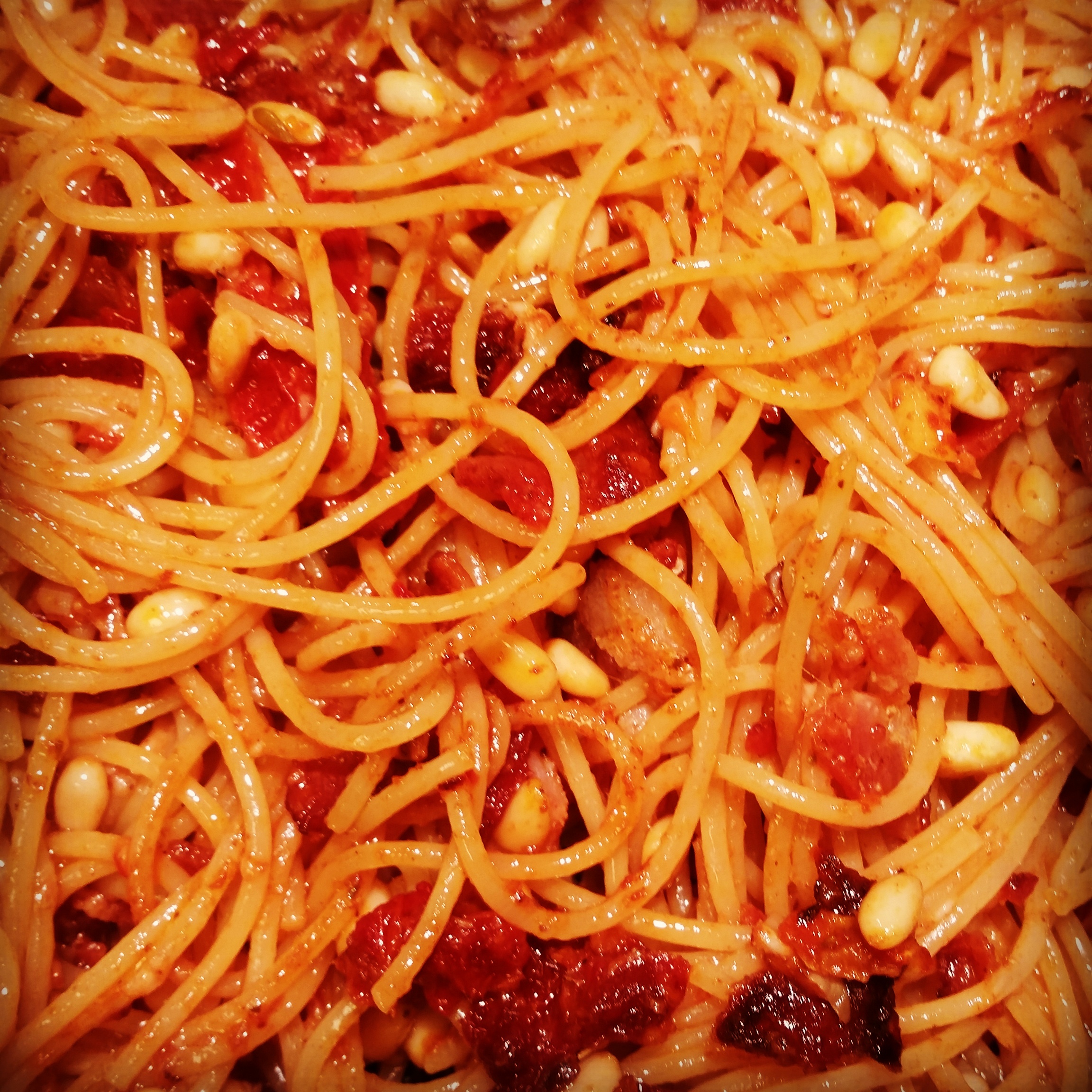 Boil pasta water with plenty of salt. Cook pasta a little under, about 8 minutes.