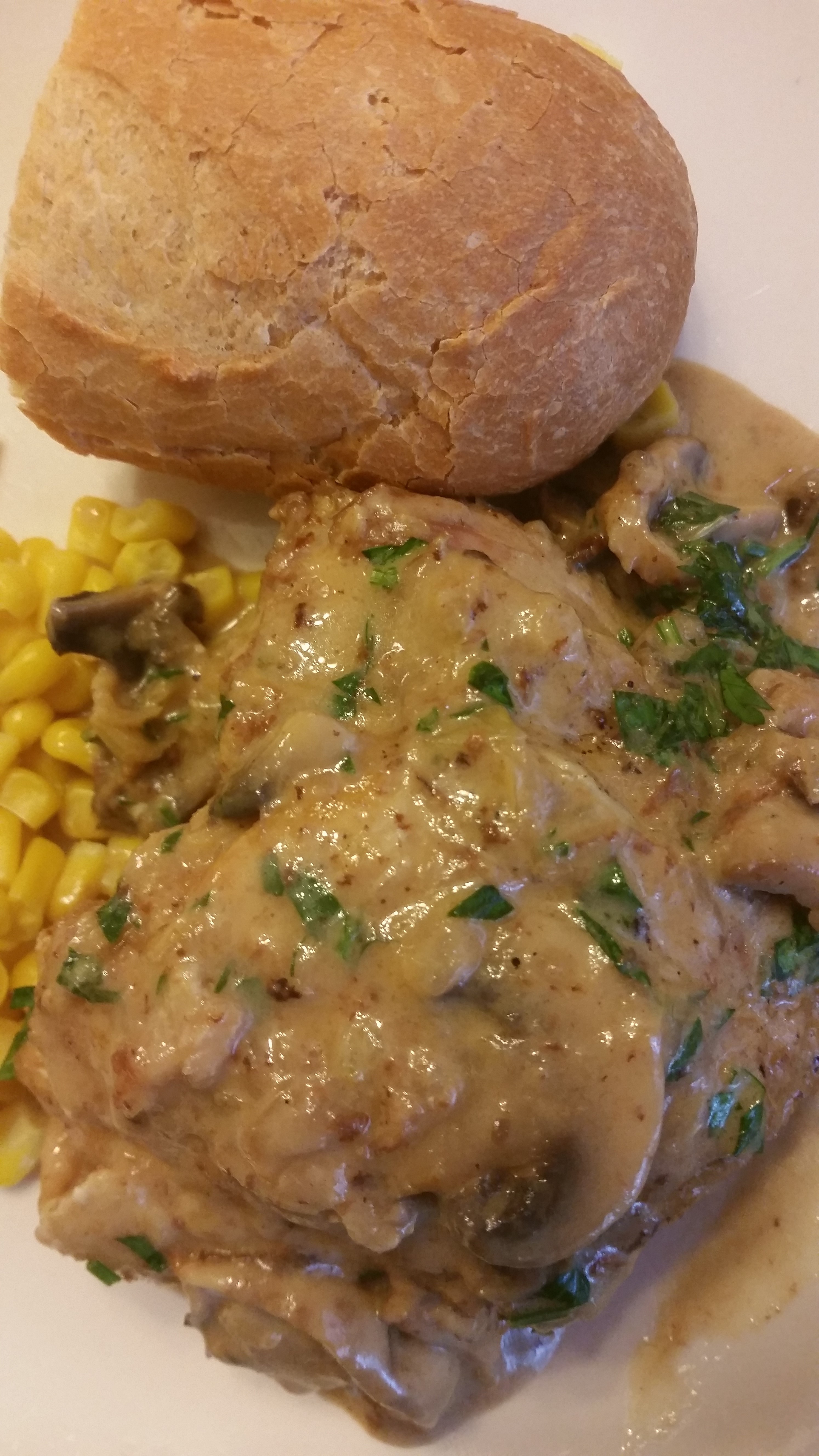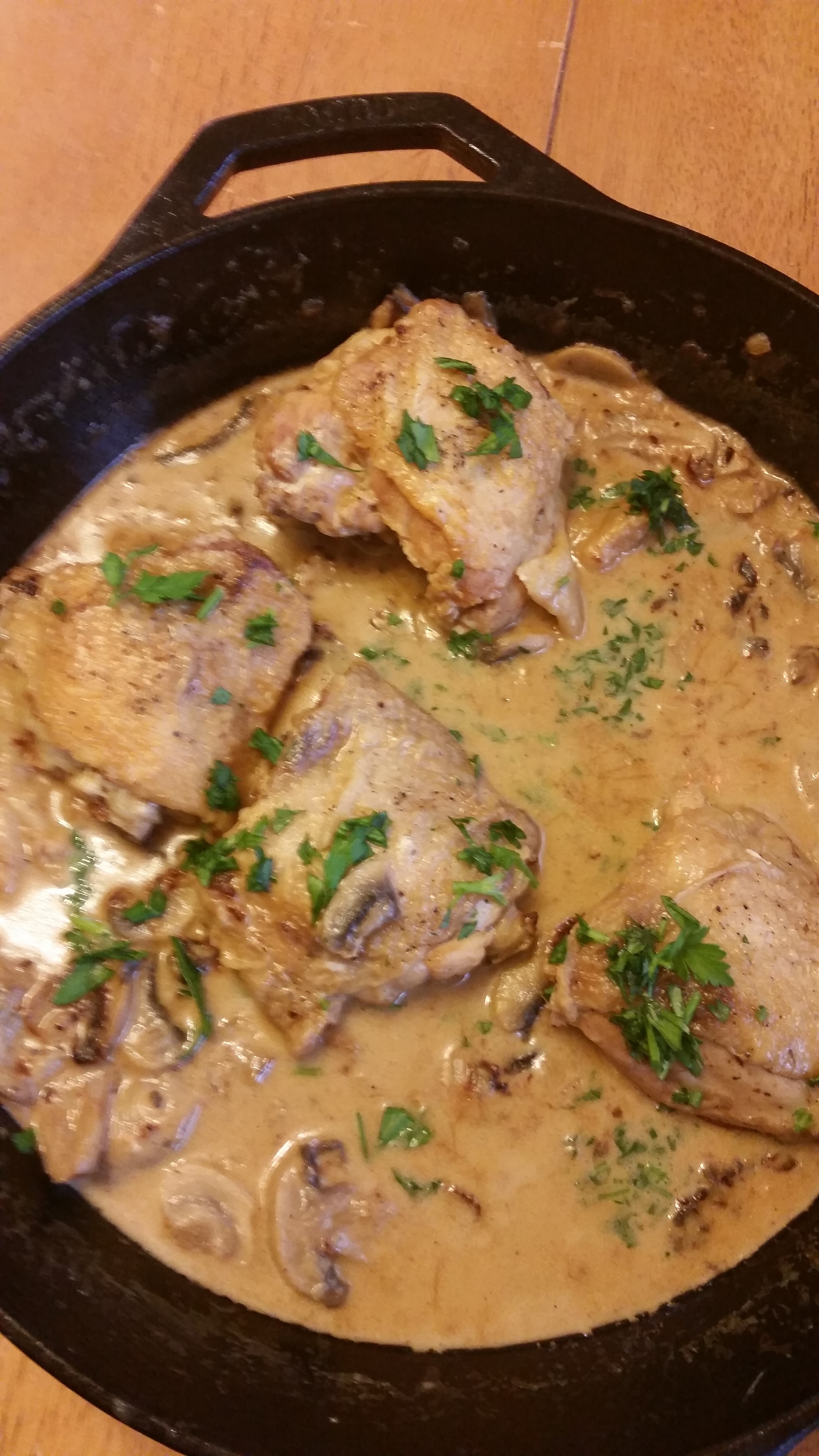 Add your chicken back in the pan. Cook for 30 more minutes with the chicken in the sauce. Take out the chicken and add in the cream cheese and heavy cream. Stir and let them all melt together. If you want a thicker sauce (to dunk bread), add in more cream cheese. If you want a thinner sauce (to add to pasta) add in more cream. Add your chicken back in. Cook for just a few more minutes… Again…Perfection.