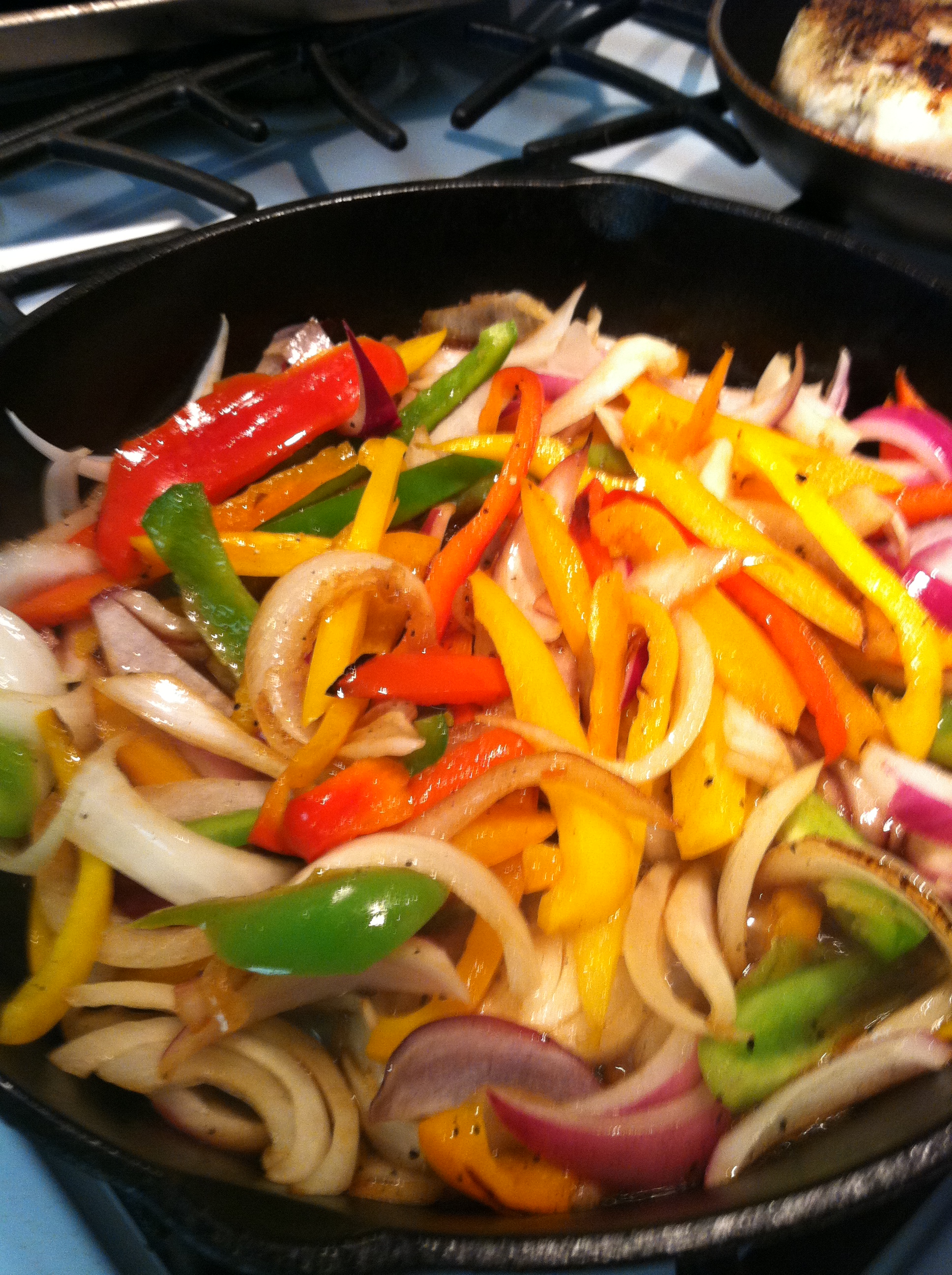 Add the remaining 2 tablespoons of oil and the onions. Reduce the heat to medium and cook the onions until soft about 3 minutes. Add the garlic and cook 1 more minute. Season with a bit of salt.